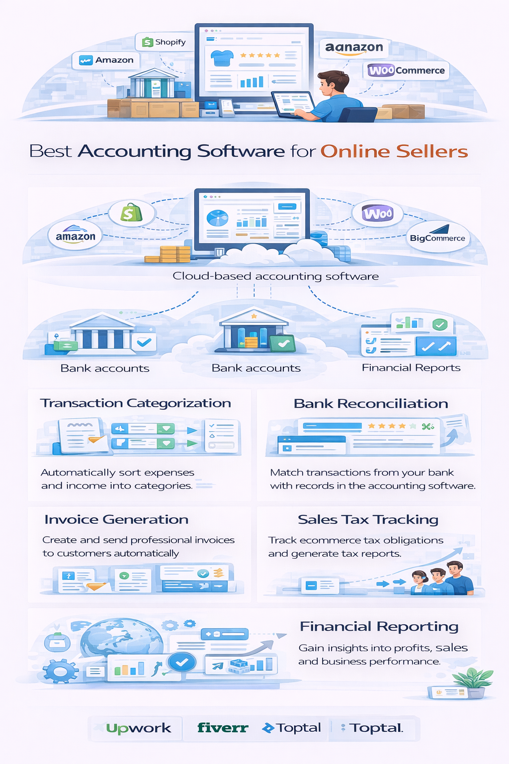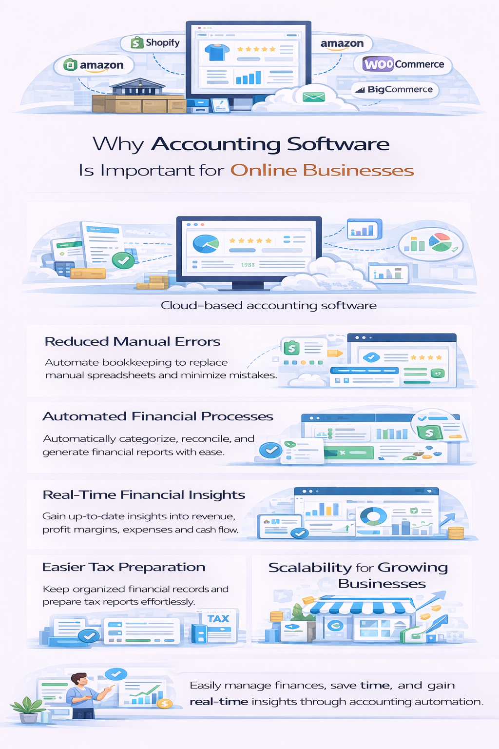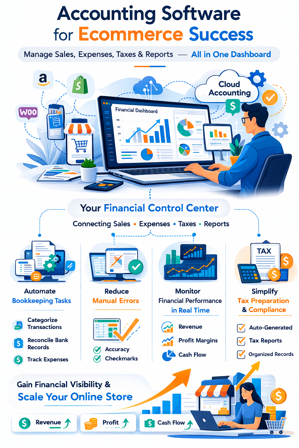 For ecommerce businesses selling on platforms like Shopify, Amazon, WooCommerce, or BigCommerce, dedicated accounting software is essential for tracking revenue, expenses, inventory, and taxes efficiently.